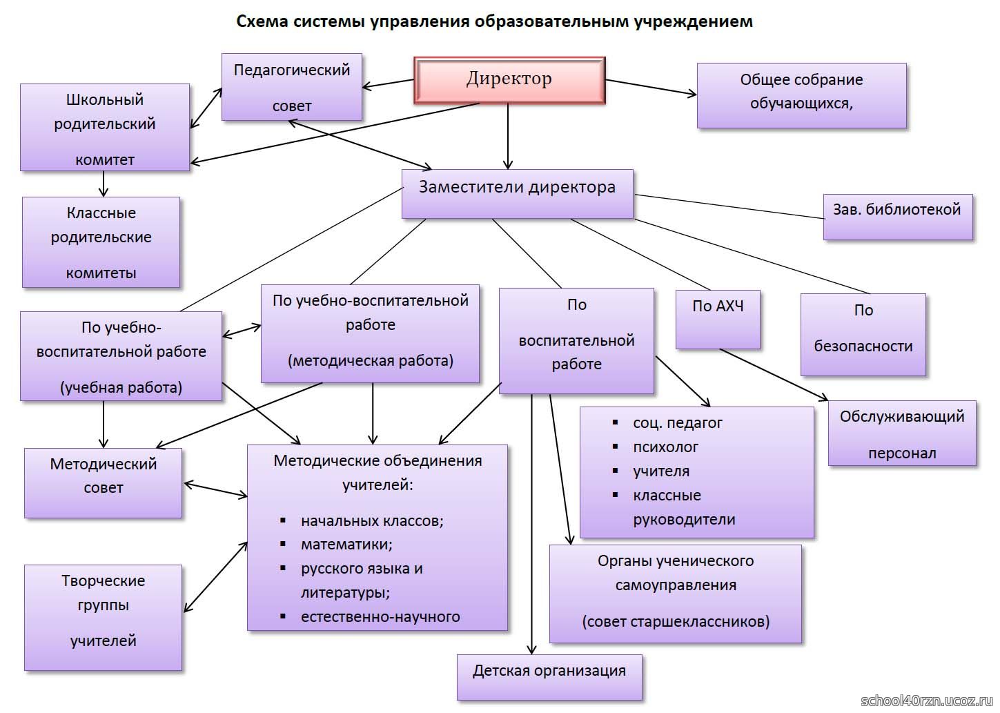 Высшим органом самоуправления школы является Управляющий Совет и Педагогический Совет школы. Деятельность всех структур, входящих в систему внутришкольного управления осуществляется в соответствии с законодательством Российской Федерации Уставом Школы и определена (регламентирована) соответствующими нормативными документами.